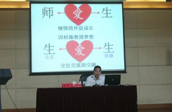 北京市民族教育学会对内地民族班“立德树人”模范班主任进行了表彰,我校施庆涛、赵高召、张凯、史红静、徐维维、尹鹏等6名班主任获奖。两天的会议中,中央民族大学严庆主任、新疆驻北京新疆籍人员服务管理工作组党委书记王龙德同志分别就新时代民族团结教育工作和新疆目前的形势进行了专题讲座。第二阶段,七位模范班主任代表进行了工作经验交流。我校班主任施庆涛做了主题为“桃李不言,下自成蹊”的经验分享,受到与会教师的广泛好评。