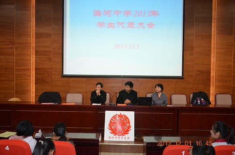 2013年12月1日下午2:00,在第一报告厅隆重召开潞河中学2013年学生代表大会。学校徐华校长、党总支副书记孙会芹老师、李权副校长、谢红春副校长出席了会议。高一、高二、初一、初二的各班代表委员和候选人参加了该活动。在大会的开幕式上,第26届学生会主席,陈瑜同学作出2012年学生会工作报告。之后大会分三个分会场通过激励的竞选演讲和庄严的投票,选举产生了新一届学生会成员。在闭幕式上,新一届学生会成员们与学生代表和老师们见面并进行了简短而精彩的自我介绍。闭幕会上,徐华校长借用毛主席的段话:“世界是你们的,也是我们的,但是归根结底是你们的。你们青年人朝气蓬勃,正在兴旺时期,好像早晨八九点钟的太阳。希望寄托在你们身上。”表达了对同学们的殷切期望。希望在座的同学们实现“今日我为潞河自豪,明日潞河为我骄傲。”的誓言