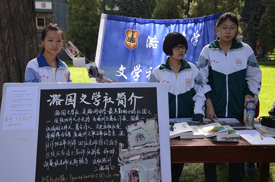 2013年9月第三周,潞河中学举行了新学年的社团集中展示与招新活动,本学年注册、新申请的30余个社团,纷纷拿出自己的看家本领展示社团特色,或利用甬路展板展示,或利用社团实物作品展示,或利用现场宣讲展示,或利用舞台表演展示,五花八门、创意新奇的各种社团活动吸引着全校师生的目光,同时也体现了潞河学子主动发展、追求卓越的校园文化。