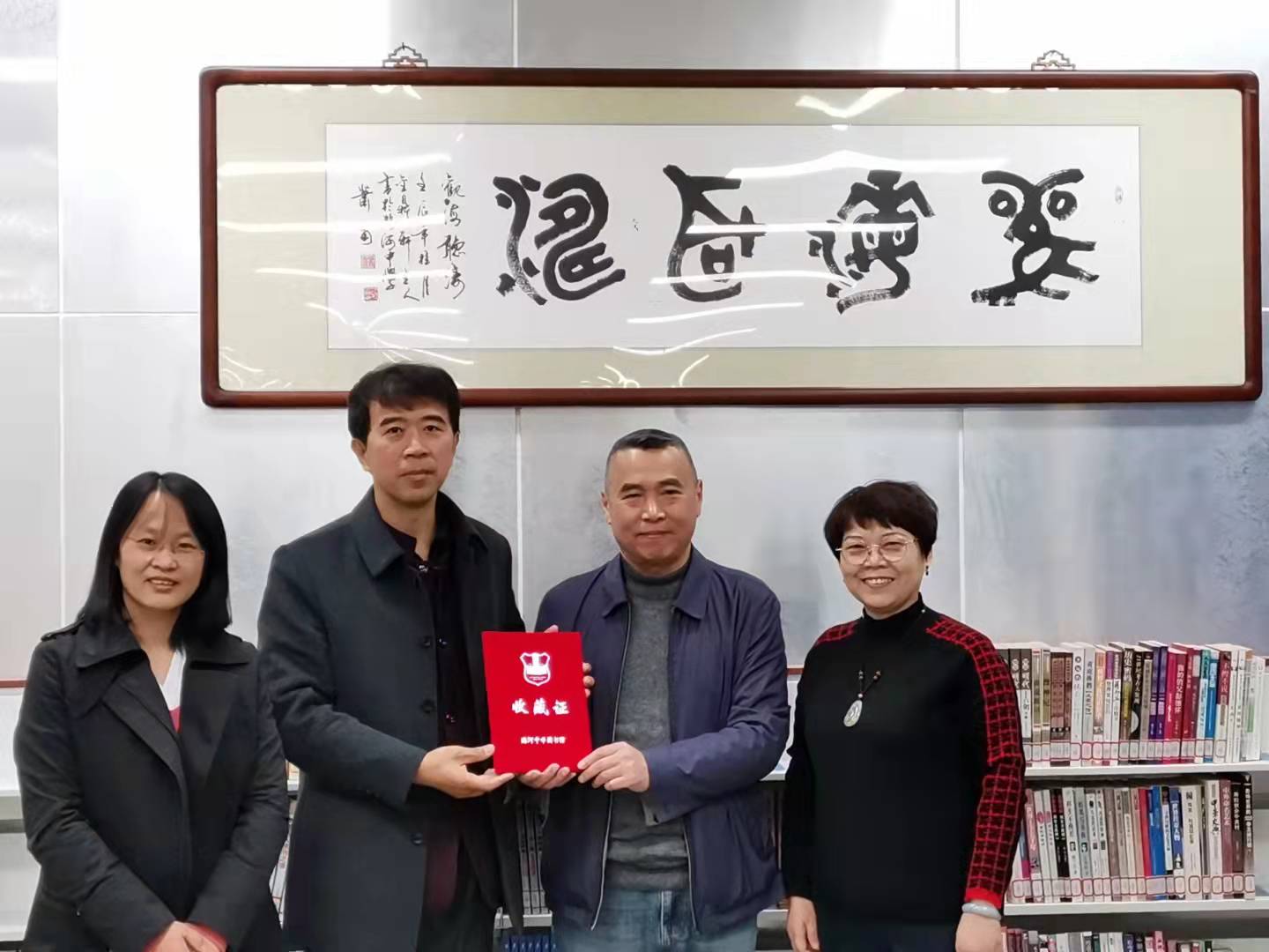 宁肯老师从少年时代就与文学结缘,由衷赞赏潞河学子对文学的喜爱与追求,特别将自己的作品《宁肯文集》一套赠与我校图书馆。祁京生副校长代表潞河师生在仁之楼图书馆接受了赠书,并将我校图书馆收藏证书送到宁肯老师手中。我校文学社指导教师和图书馆负责教师参加了赠书仪式。